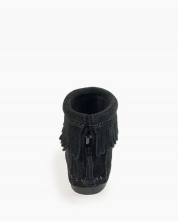 Playful fringe wraps a classic, suede-crafted boot, along with bold stitching around the base of the shoe. A cushioned footbed provides a soft step while the lightweight rubber sole offers durability for any type of play. So easy to get on and off those wiggly feet, you'll love these boots as much as your tot!