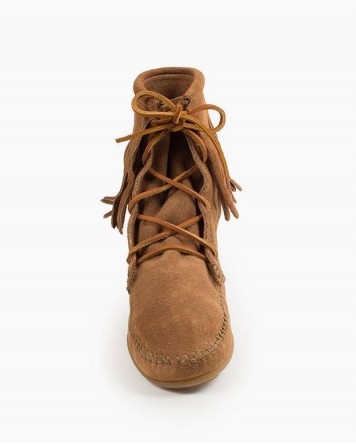 Since 1967 celebrities and Minnetonka fans alike have loved lacing up these classic high ankle boots. Made by hand from soft and supple suede, your feet will be wrapped in constant comfort. Our classically simple fringe flows down from the high collar for a sleek and stylish silhouette.