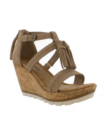 De forts accents de Minnetonka se retrouvent dans cette collection sport-chic. Des plateformes compensées 3-1/2" entourées de liège, sur une semelle elancée et presque athlétique.