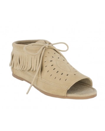 La Classic Fringe Boot de Minnetonka revisitée pour cette belle saison d'été . De belles franges ne laissant pas douter qu'ils s'agit là de sandales Minnetonka et une tige en cuir perforée motif soleil. Le clou c'est surtout un peep-toe bout ouvert sublime ! Vous avez le droit de craquer pour notre must-have à frange de l'été. Si vous aimez la griffe Minnetonka vous adorerez aussi ces sandales pour la touche boho-chic de la saison.