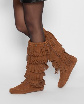 5-LAYER FRINGE BOOT Cette nouvelle référence est l'essence pure de Minnetonka. cinq rangées de franges, un rappel de médaillons et un zip sur l'intérieur pour une facilité d'usage.
