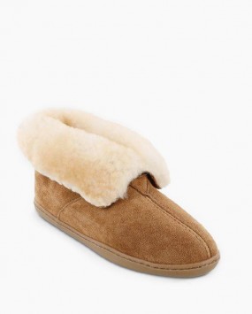 Add a little warmth to your ankles with these versatile ankle-high sheepskin slippers. The slippers' high collar can be rolled up or down, depending on the level of comfort you need. Handmade from genuine sheepskin, these slippers have soft sheepskin linings for a luxe level of comfort. The soles are specially designed for indoor or outdoor use.
