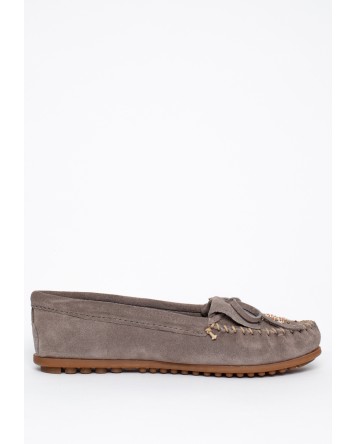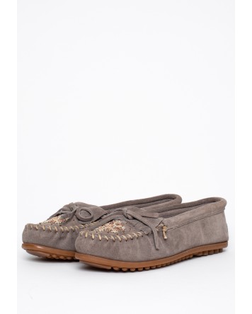 Our best-selling moccasin gets a dose of haute couture craftsmanship with the intricate bead design of artist Môko Kobayashi. This limited edition style features a hand-beaded snowflake design, merging the quality craftsmanship of Minnetonka with the traditional French embroidery methods Môko learned as a student in Paris.